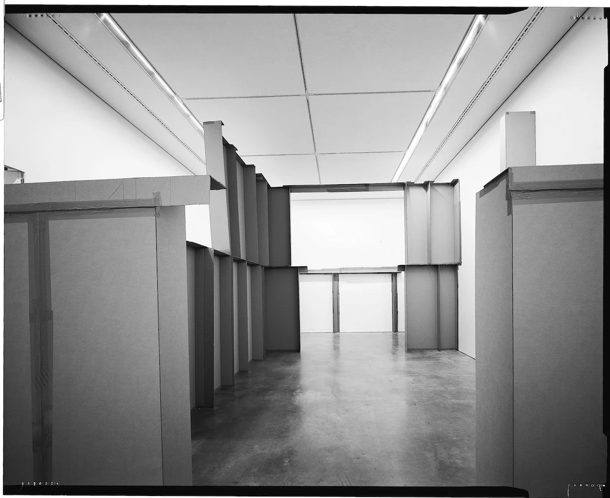 Bunga presented one of his complex architectural structures made from corrugated cardboard held together with packing tape. The structures take over the environment they inhabit, encouraging an alternative reading of the original space and emphasizing the instability of architecture. There is a possibility of growth and change; the constructions mutate, develop, extend and remain in a state of transformation, to be walked through by the audience.